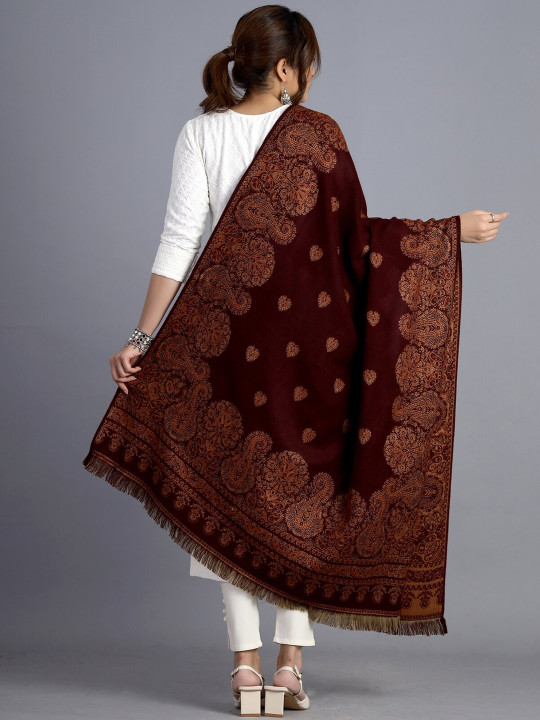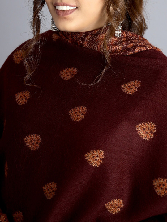 HANDICRAFT PALACE Women Maroon & Brown Woven Design Shawl
