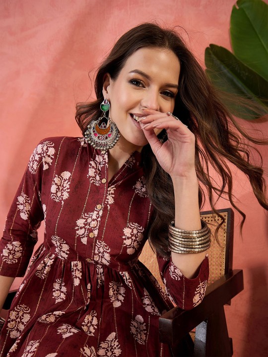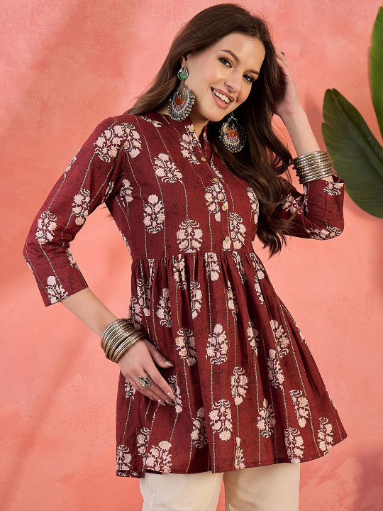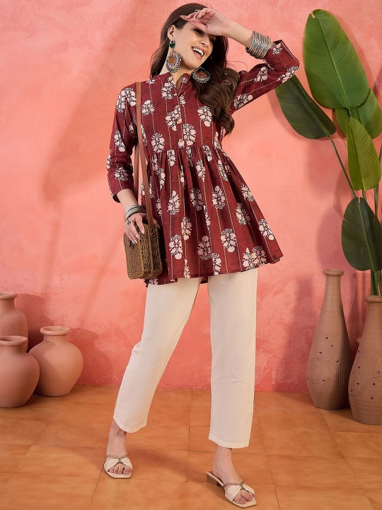 Sangria Printed Pure Cotton Tops