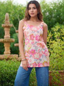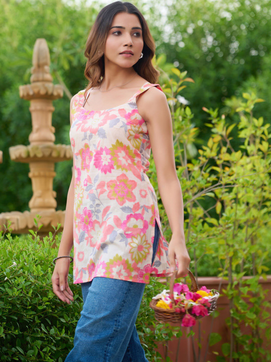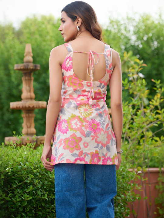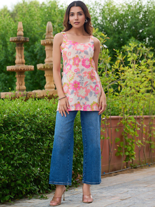 - Off white and pink straight kurti